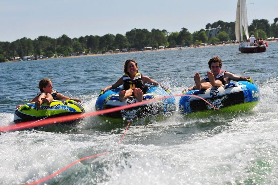 De camping bevindt zich direct aan het meer van Cazou et de Sanguinet, waardoor je de gelegenheid hebt om te zwemmen, van de zon te genieten of te watersporten. Watersportliefhebbers kunnen hun eigen boot meenemen en aanleggen in de eigen jachthaven. Op slechts 12 kilometer afstand bevindt zich Biscarrosse-Plage en de Atlantische Oceaan. Hier kun je genieten van diverse zandstranden en de levendige sfeer van deze kustplaats ervaren.