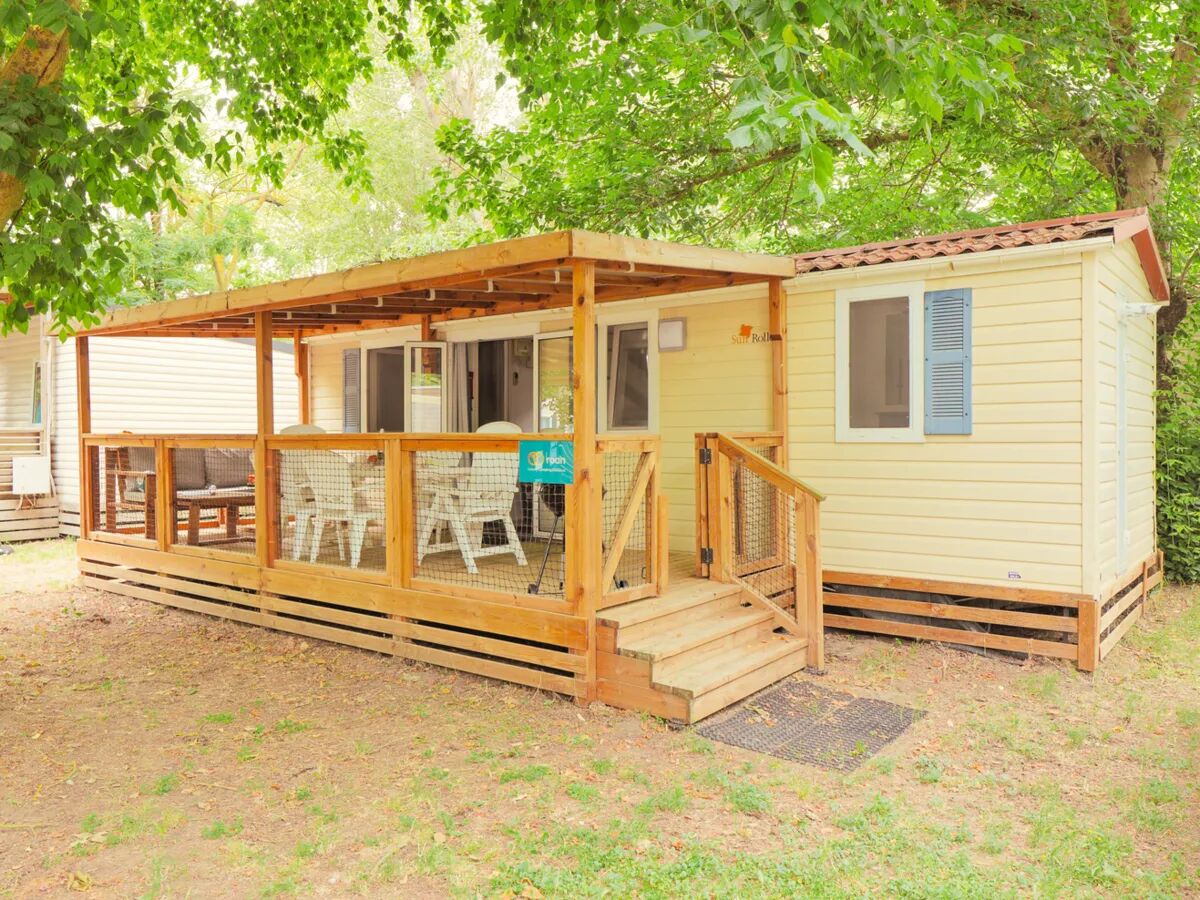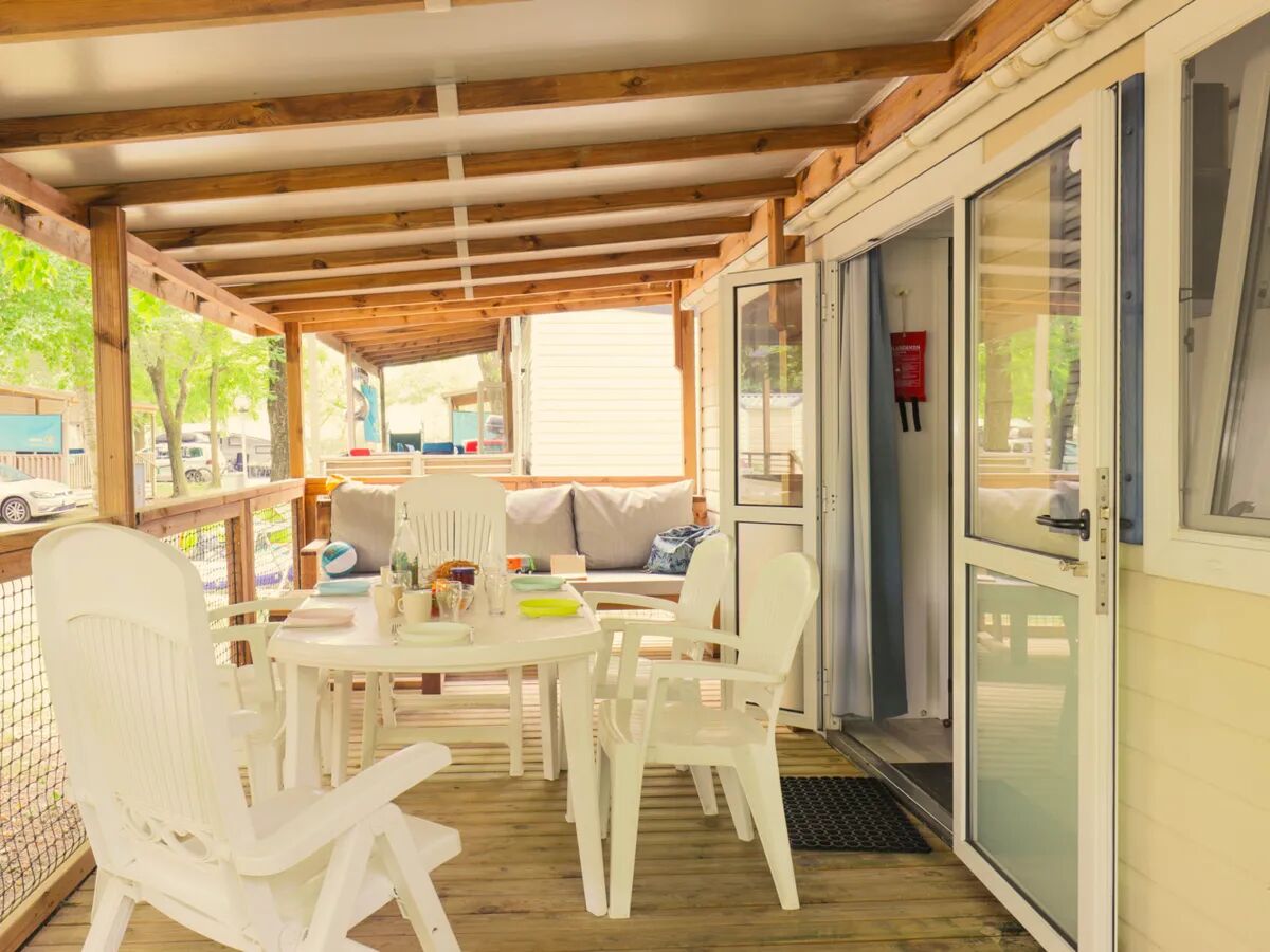 Airco Veranda hekje LoungebankStacaravan huren bij Roan? Van onze populaire tweeslaapkamerstacaravan Classic kun je op een aantal campings de Relax-variant boeken: de stacaravan "Classic Relax". Deze praktische en uitstekend uitgeruste stacaravan (24 m2, 3.00 x 8.00 meter) is voorzien van een schuin pannendak, gezellige luikjes, gratis airconditioning, een overdekte houten veranda van 15 m2 en een loungebank!