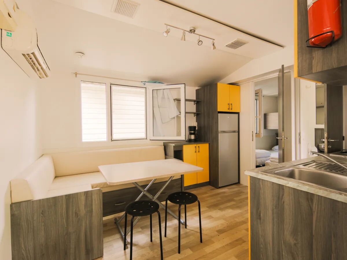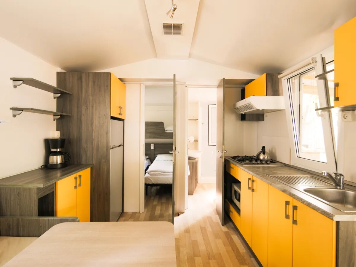 Onze gezellige Classic Relax met een vloeroppervlakte van 24 m² is voorzien van een ruime woonkamer met airconditioning, eethoek, comfortabele banken en voldoende kastruimte. Daarnaast is er een prima uitgeruste keuken met magnetron, koffiezetapparaat, hoge koelkast met apart vriesvak. De stacaravan is voorzien van een eigen badkamer met een douche, toilet en wastafel.