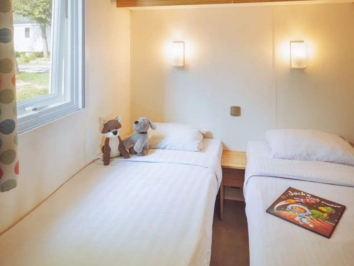 Deze luxe stacaravan beschikt over 3 slaapkamers voor optimaal slaapcomfort! In de ouderslaapkamer staat een groot tweepersoonsbed van 2.00x1.60. De tweede slaapkamer is voorzien van 2 eenpersoonsbedden. Eén van de bedden kan onder de andere geschoven worden, zodat je in deze kamer genoeg ruimte heeft om o.a. een babybedje te plaatsen. In de derde slaapkamer vind je of 2 éénpersoonsbedden of een stapelbed (max. 70 kg). Tevens is er in de woonkamer ruimte voor één slaapplaats. Alle bedden zijn voorzien van eenpersoonsdekbedden. Alle slaapkamerramen zijn voorzien van muggenhorren en een peuter uitval-bedrekje zit standaard in deze stacaravan.