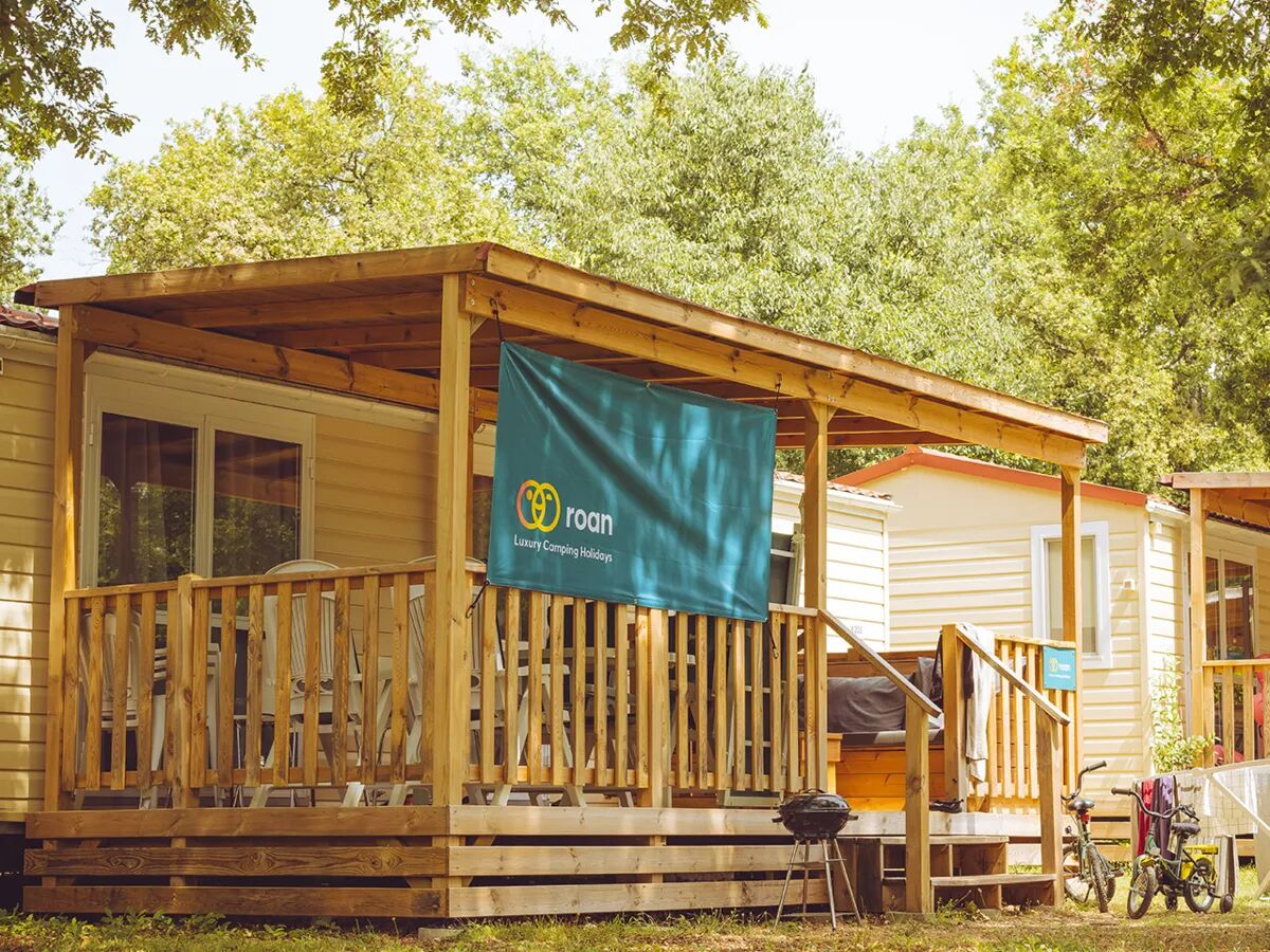 De overdekte veranda is maar liefst 7,5 meter lang en 2,5 meter diep en altijd afsluitbaar met een hekje. Met de Roan sunbanner kun je altijd schaduw onder de overkapping creëren. Op de andere kant van de veranda staat een mooie loungebank met grote comfortabele kussens en een bijzettafeltje. De luxe tuinset bestaat uit 4 verstelbare stoelen met stoelkussens, 3 kuipstoelen en een luxe ligbed met dakje. Op de campingpagina kun je lezen over welke gratis barbecue/grillplaat jouw accommodatie beschikt.